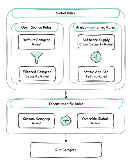 Each Opengrep execution collects the global rules in a form of a dictionary. If the rule identifier is unique, it is appended to the dictionary. However, if the rule identifier has the same name as one of the global rule identifiers, it will override the global rule.