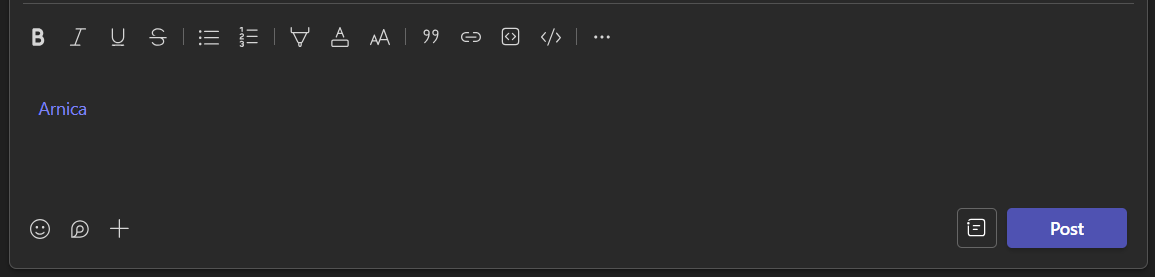 2. Choose the Team/Channel that you'd like to add Arnica to and start a new post.