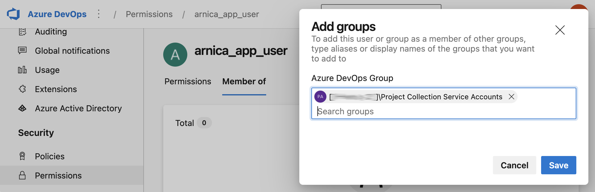 To configure the permissions of the Application User, follow the steps below for each Azure DevOps organization: