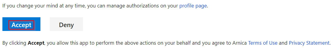You will then be redirected to a consent page, Click Accept:
