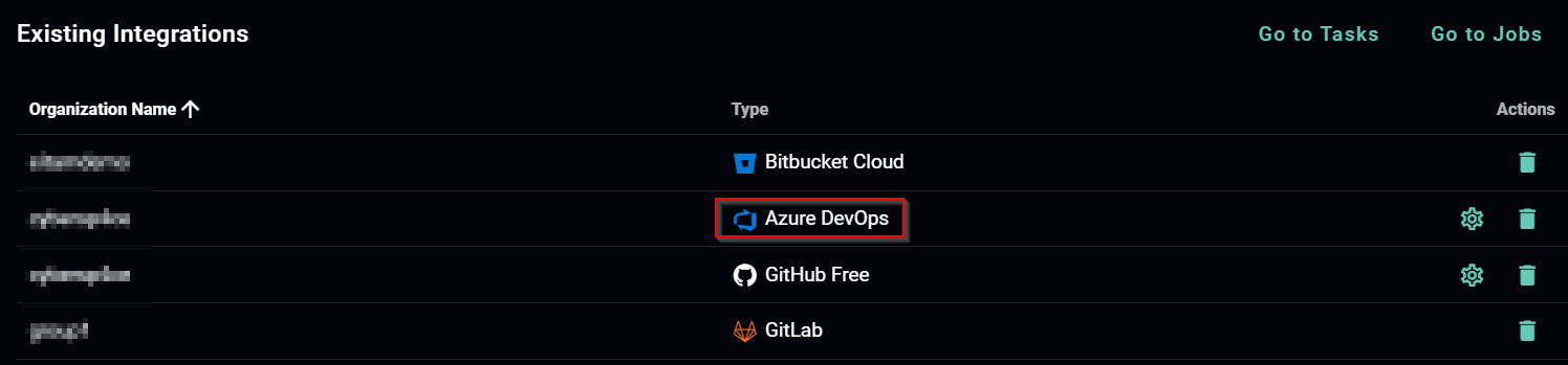 If the integration was successful, you should see the Azure DevOps integration under the Existing Integrations section: