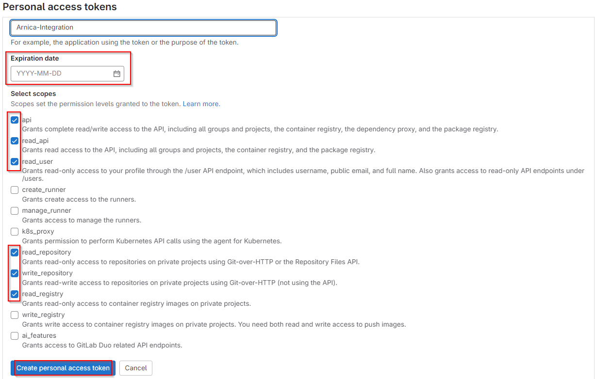 Arnica's GitLab integration uses a GitLab-generated app password tied to a specified user. To prevent the token from being revoked when that user leaves, we recommend creating and integrating with a dedicated application user.